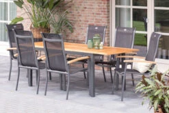 HARTMAN Alice Esstischgarnitur, Xerix, Alu/4×4 Textilen, Tisch 180/240x100cm, 6 Multipositionssessel