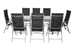 VILLANA Sitzgruppe, Silber/schwarz, Alu/Textil, Tisch 160/220 Cm, 8 Multipositionssessel