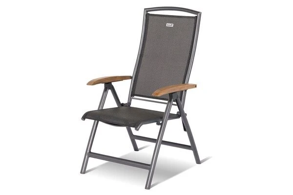 Die Multipositionssessel überzeugen durch ihre schlichte Optik mit dem pulverbeschichteten Aluminiumrahmen in der Farbe Xerix, dem gleichfarbigen Textilen-Gewebe (70% Polyvinylchlorid, 30% Polyester) und den Armlehnen aus edlem FSC®-zertifiziertem Teakholz aus. Auch funktional überzeugen diese bequemen Gartensessel: Die Rückenlehne lässt sich kinderleicht in mehreren Stufen verstellen und bietet damit einen hervorragenden Sitzkomfort. Dank des Aluminiumgestells sind die Sessel mit einem Gewicht von ca. 6 kg zudem leicht und einfach zu transportieren.