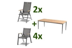 Elegant und zugleich robust präsentiert sich diese extravagante Esstischgruppe von Hartman für 6 Personen. Das Set besteht aus einem rechteckigen Esstisch mit den Maßen von ca. 220 x 90 cm, 4 Stapelsessel und 2 Multipositionssessel aus der “Aruba”-Serie.