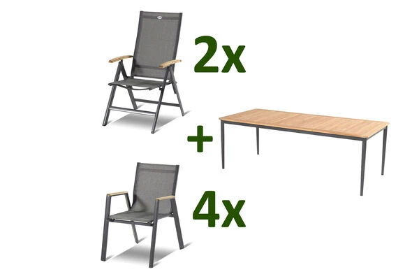 2x Multipositionssessel Aruba mit FSC-Teakholzarmlehnen