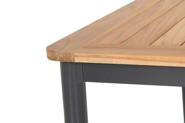 Die Tischleisten aus FSC-zertifiziertem Teakholz verleihen diesem Tisch einen ganz besonderen Charme. Darüber hinaus ist Teakholz besonders witterungsbeständig und hält sowohl Hitze und Frost, als auch Regen und Feuchtigkeit aus. Es hat außerdem aufgrund des hohen Anteils an holzeigenen Ölen einen natürlichen Schutz gegen Pilze und andere Schädlinge.