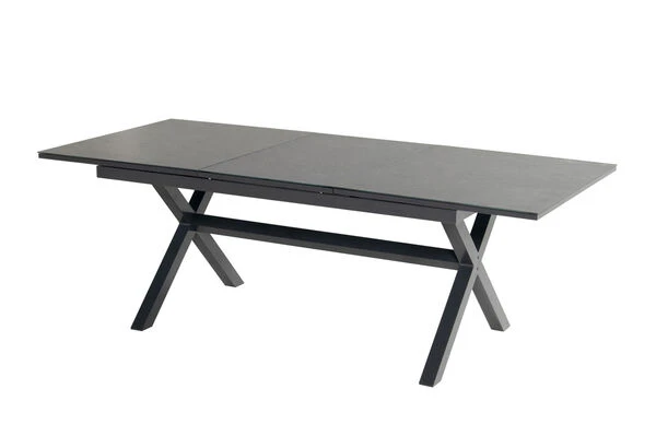 Das gekreuzte Gestell ist gefertigt aus pulverbeschichtetem Aluminium in der Farbe Xerix (Anthrazit) und wird optisch perfekt durch die Glaskeramik-Tischplatte, ebenfalls in der Farbe Xerix ergänzt. Die Maße von ca. 160 x 100 x 75 cm sorgen dafür, dass stets ausreichend Ablagefläche zur Verfügung steht. Bei Bedarf kann der Tisch auf eine Länge von ca. 220 cm ausgezogen werden, so finden bequem auch große Runden genügend Platz in Ihrem Garten. Dank der Ausziehfunktion hebt sich dieses Modell von den üblichen Tischen der Xanadu Serie ab – den Ausziehtisch erhalten Sie exklusiv bei uns.