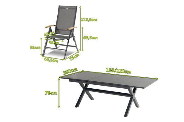 Hartman Esstischgarnitur mit Xanadu Ausziehtisch aus Alu und 6 Multipositionssessel aus der Serie “Aruba”