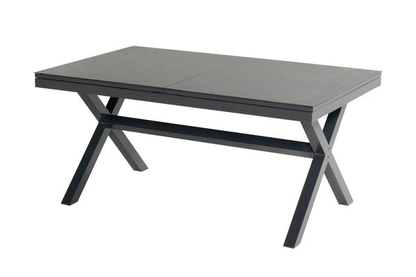 Das gekreuzte Gestell ist gefertigt aus pulverbeschichtetem Aluminium in der Farbe Xerix (Anthrazit) und wird optisch perfekt durch die Glaskeramik-Tischplatte, ebenfalls in der Farbe Xerix ergänzt. Die Maße von ca. 160 x 100 x 75 cm sorgen dafür, dass stets ausreichend Ablagefläche zur Verfügung steht. Bei Bedarf kann der Tisch auf eine Länge von ca. 220 cm ausgezogen werden, so finden bequem auch große Runden genügend Platz in Ihrem Garten. Dank der Ausziehfunktion hebt sich dieses Modell von den üblichen Tischen der Xanadu Serie ab – den Ausziehtisch erhalten Sie exklusiv bei uns. Die verwendeten Materialien sind extrem witterungsbeständig und pflegeleicht, weshalb der Tisch auch bei schlechtem Wetter ohne Probleme auf Ihrer Terrasse stehen bleiben kann. Außerdem ist das Aluminium ziemlich unempfindlich und hält spielend Kälte und Frost stand. Die Tischplatte aus dem Glas-Keramik-Gemisch ist stoß-, schlag- und schnittbeständig und somit ein idealer Begleiter im Familienalltag. Die Trägerplatte ist eine Platte aus Glas, auf die eine dünne Keramikschicht aufgetragen wird.