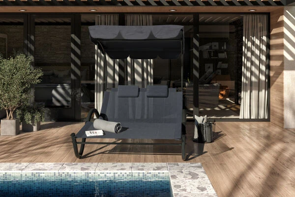 Rollbare und praktische Sonnenliege für zwei Personen von OUTFLEXX® in anthrazit