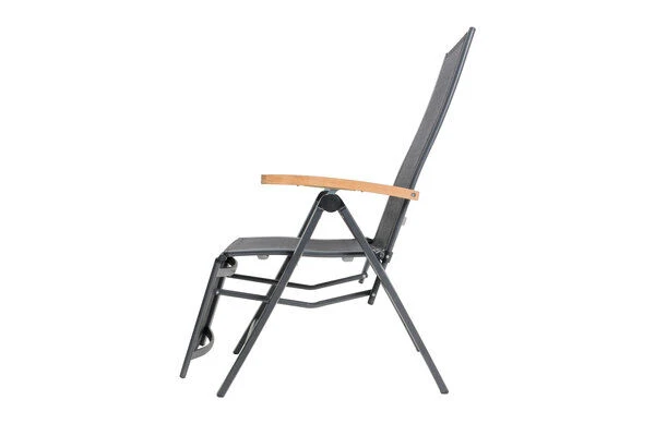 Relaxsessel von OUTFLEXX® aus Aluminium/Textilene in OUTFLEXX® anthrazit matt/schwarz mit FSC®-zertifizierten Teakholz-Armlehnen