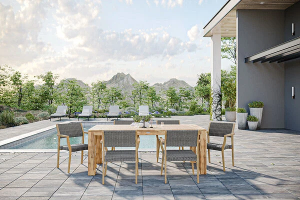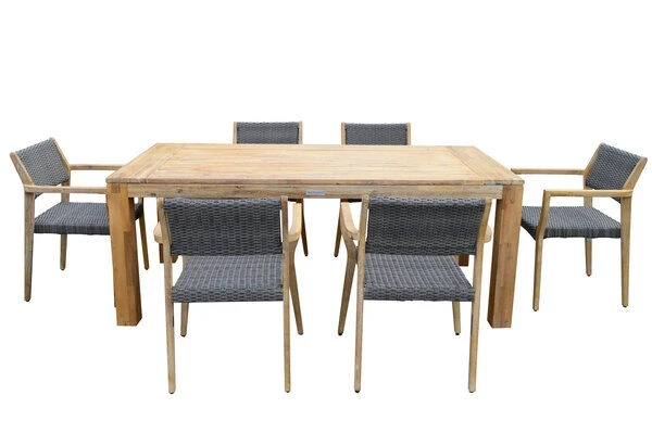 OUTFLEXX® Esstischgarnitur aus FSC®-zertifiziertem Akazienholz für sechs Personen
