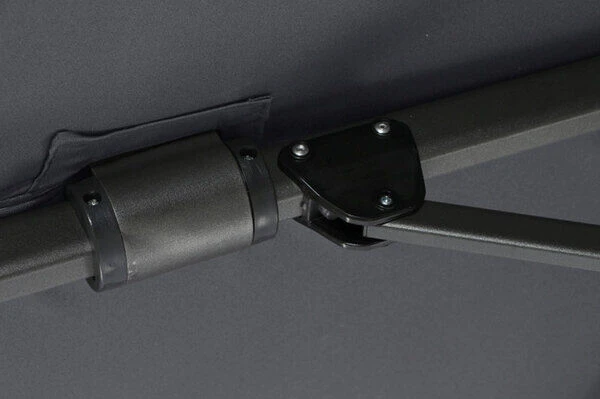| Leichte Handhabung Dank der leichtgängigen Kurbelmechanik ist der Ampelschirm bei Bedarf schnell und einfach geöffnet oder geschlossen. | |