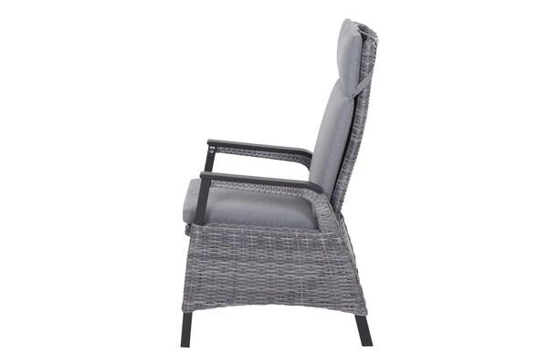 Bei Wind und Wetter sorgt die Witterungsbeständigkeit und Pflegeleichtigkeit der verwendeten Materialien für den nötigen Schutz. Das Untergestell des Sessels besteht aus pulverbeschichtetem Aluminium, und ist stabil sowie widerstandsfähig. Aufgrund seines geringen Gewichts (ca. 11 kg) lässt er sich auch schnell an Ihren Lieblingsplätzen im Garten, auf der Terrasse oder auf dem Balkon platzieren. Das Aluminiumgestell wird mit halbrundem GARDINO®-Geflecht aus Polyethylen bespannt. Diese Faser trocknet besonders schnell, ist schmutzunempfindlich und erzeugt mit ihrer natürlichen Optik einen edlen und modernen Look, der jeder Gartengestaltung ein besonderes Flair verleiht. Die gemütlichen und pflegeleichten Sitzpolster aus 100 % Polypropylen sind farblich passend auf das Geflecht abgestimmt. Bei Verschmutzung sind die Bezüge leicht zu reinigen – bitte beachten Sie, dass das Kopfteil nicht abnehmbar ist. Wir empfehlen dieses vorsichtig per Hand zu waschen. Ergänzen Sie den tollen Loungesessel mit weiteren Möbeln von SIENA GARDEN. Die große Auswahl macht es Ihnen leicht sich Ihren persönlichen Ruhepol zusammenzustellen.